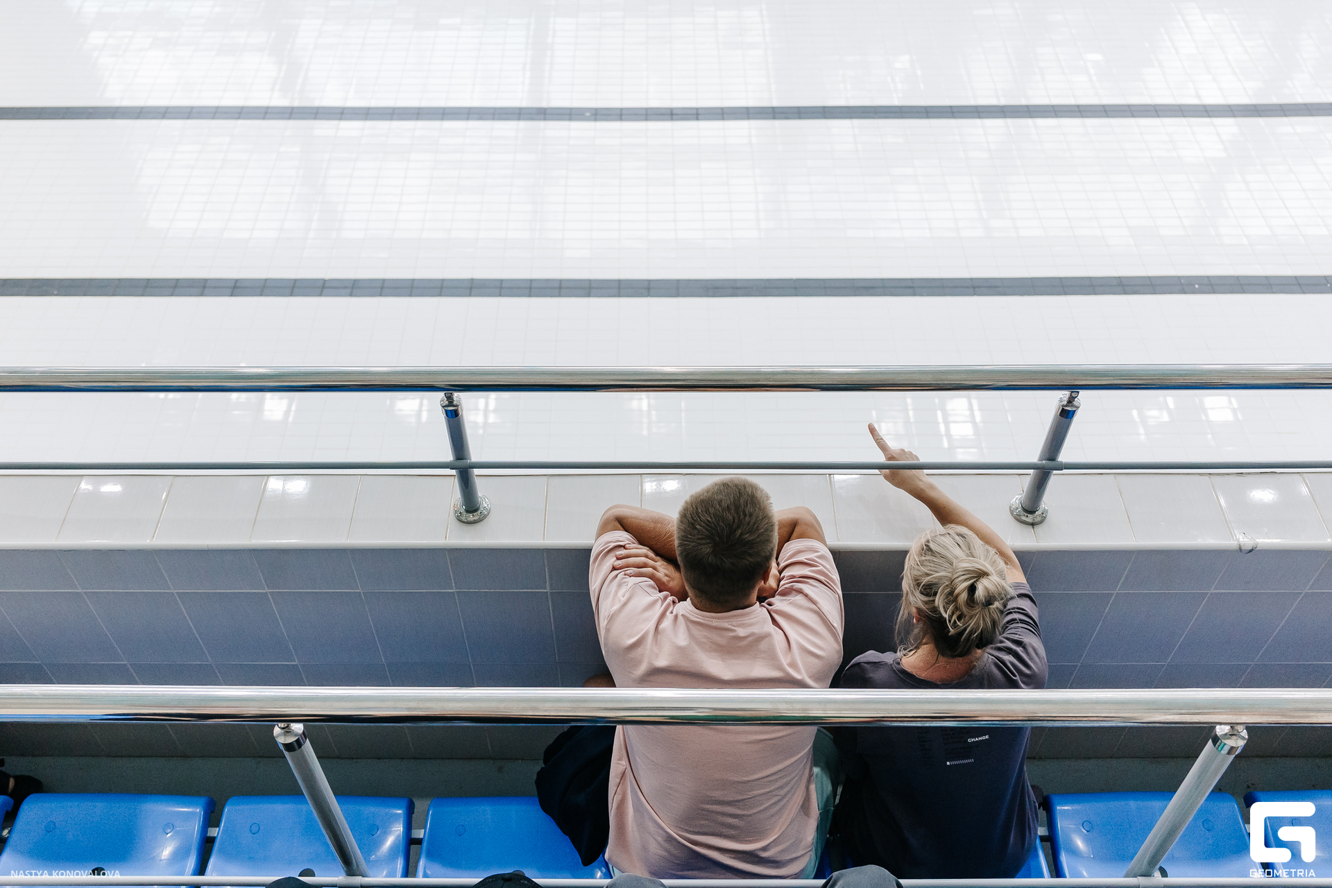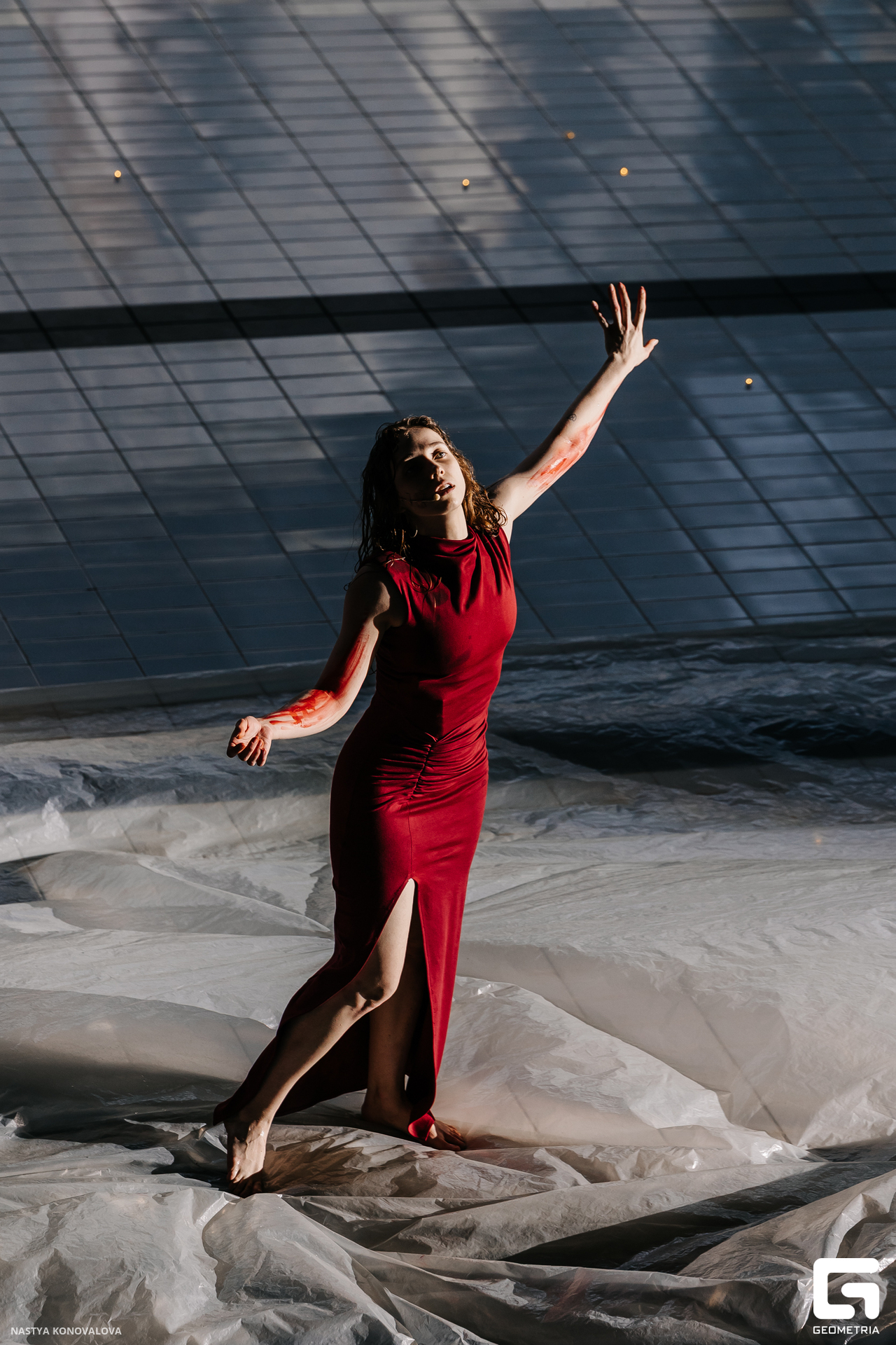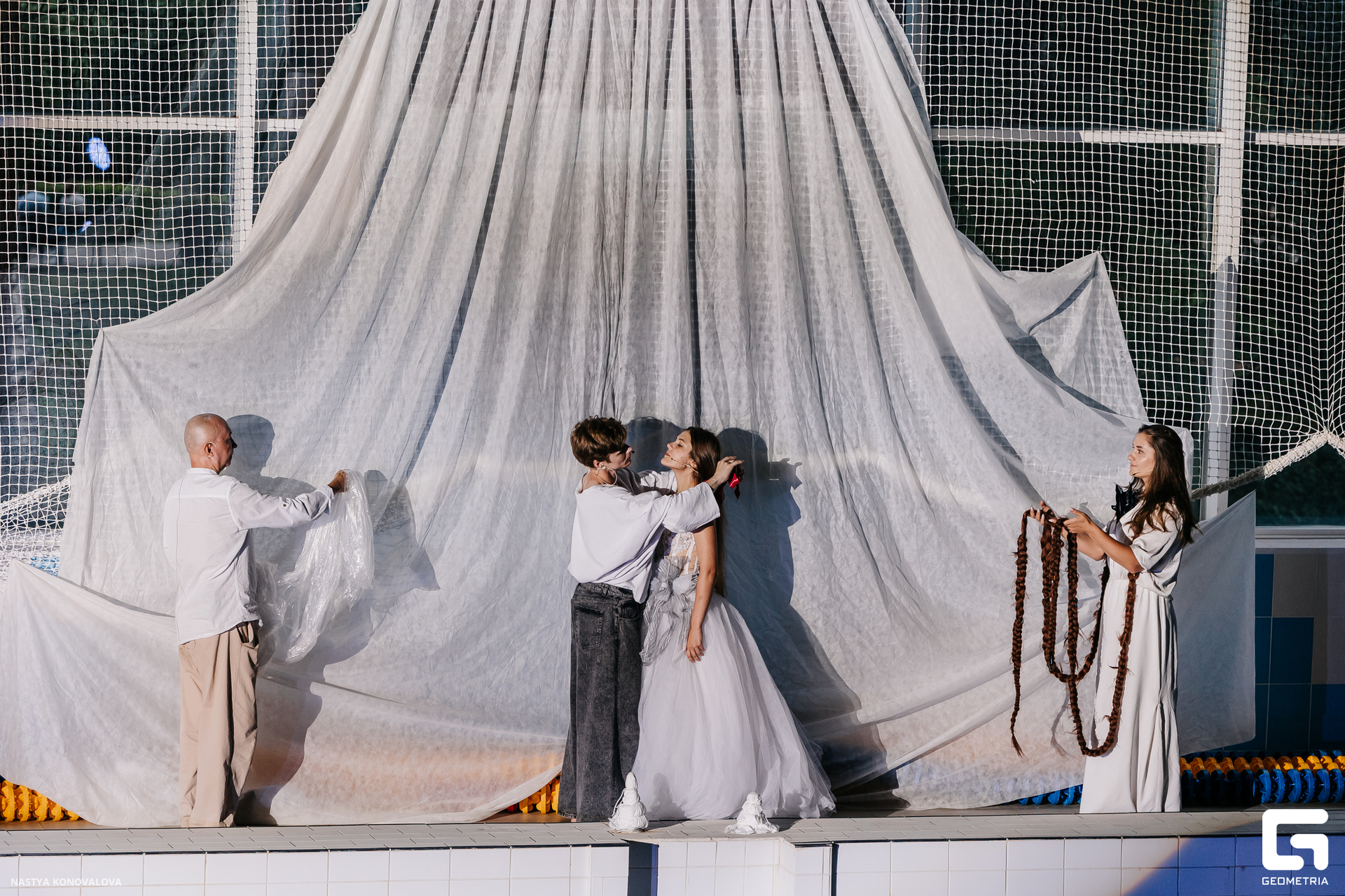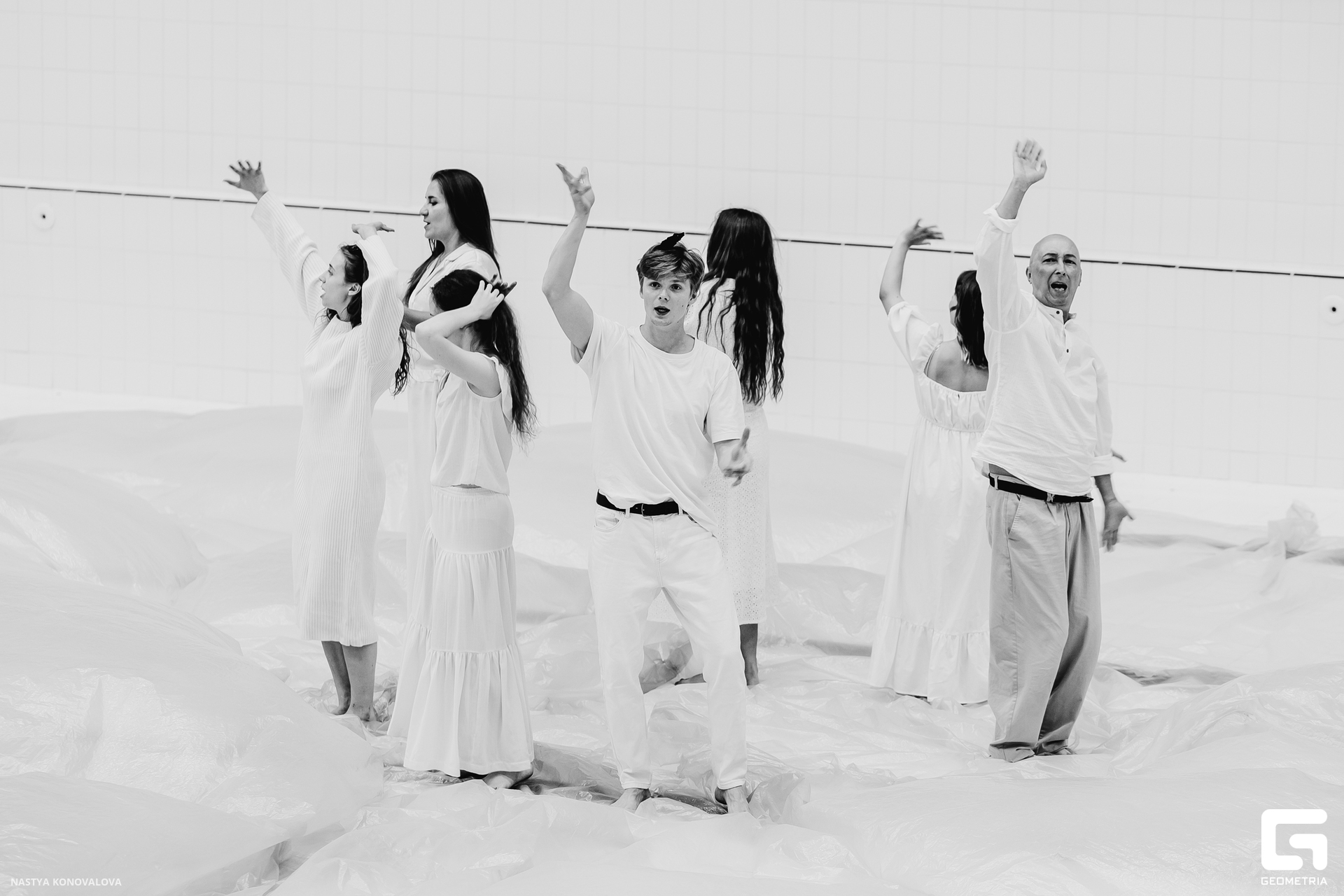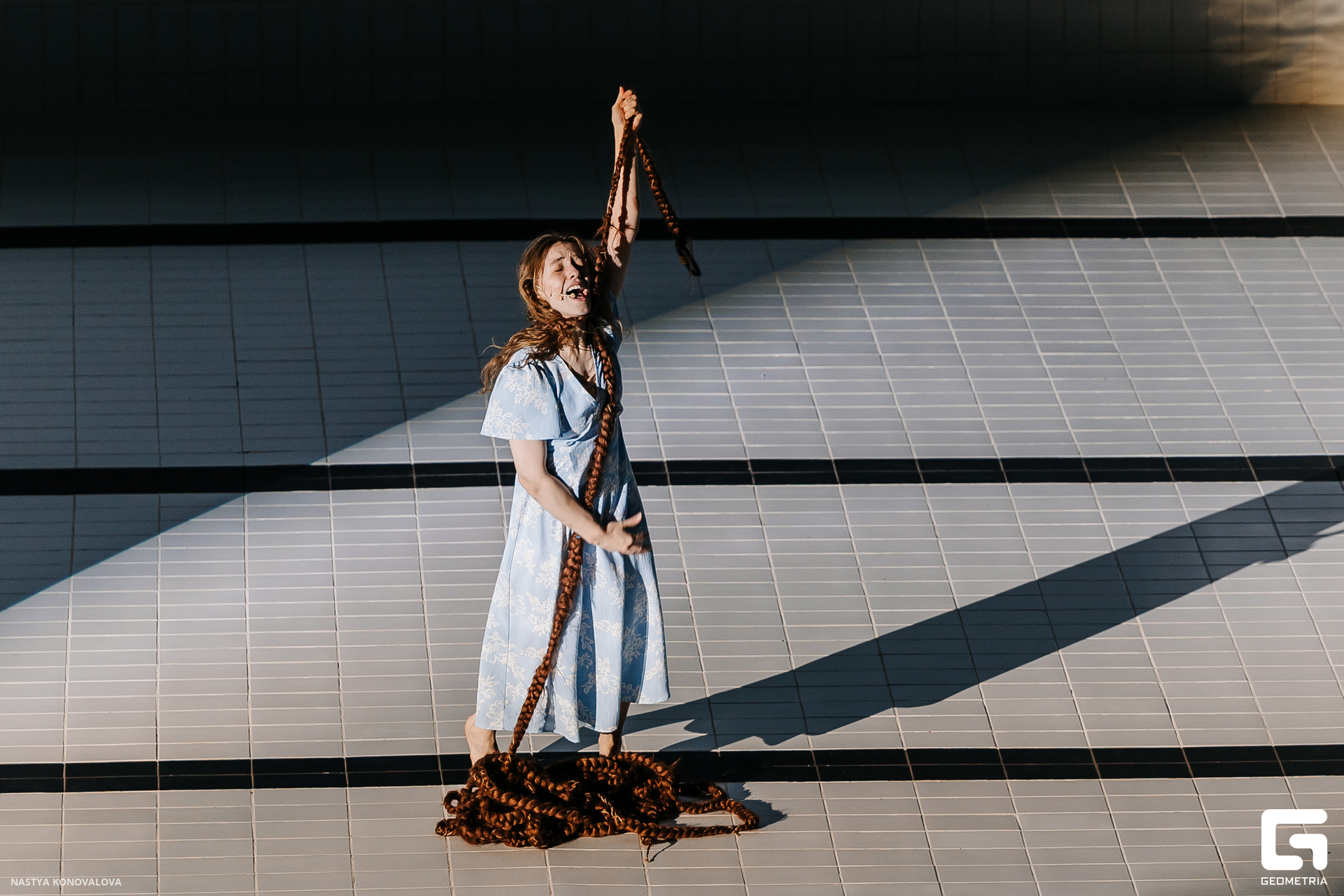 В спектакле Екатерины Половцевой пустой бассейн, ожидающий наполнения, — как омут сомнений, из которых невозможно выбраться. Постоянное ожидание избавления от тревог, самоистязания, чувство вины, надежда на то, что крепко запутанный клубок предательств разрешится и настанет счастливое, спокойное, безмятежное время. Но в этом ожидании жизнь замирает, гниёт и человек превращается в собственную тень.