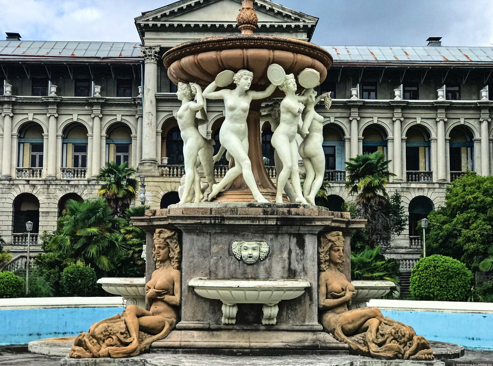 Санаторий имени Серго Орджоникидзе был построен в стиле сталинского неоклассицизма в 1937 году в Сочи. Санаторий состоит из 9 корпусов и занимает территорию в 16 гектаров. В 1956 году санаторий стал декорацией для фильма «Старик Хоттабыч». В 2010 году здание закрыли на реконструкцию, однако, работы так и не были проведены, и санаторий остался в запустении.